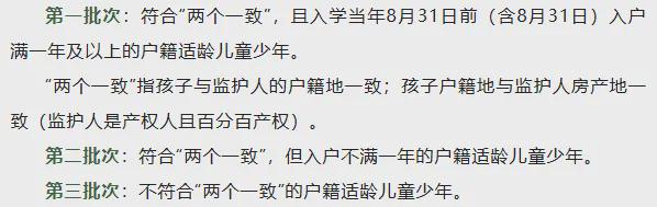 官方阐述注解:孩子与法定监护东谈主户籍场所地一致,且户籍场所地与实质居住地一致。其中,户籍地与实质居住地一致,即提供的房产证抓有东谈主为适龄儿童少年的法定监护东谈主100%产权,且房屋地址与适龄儿童少年场所的户口簿地址一致。